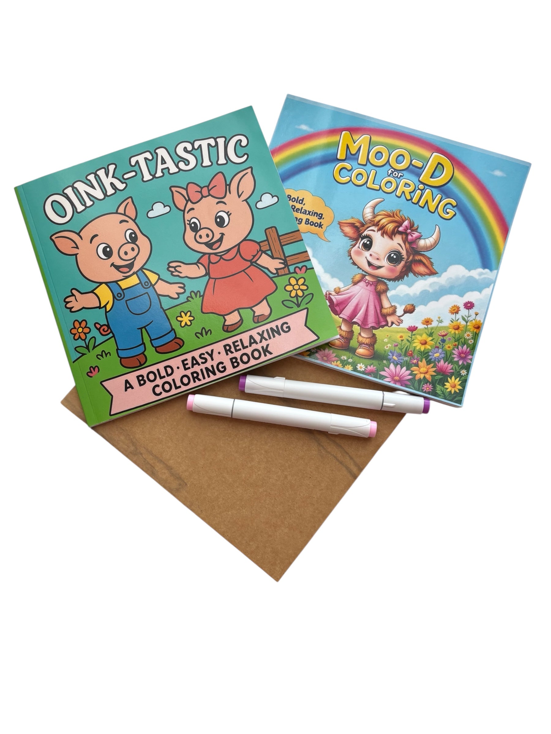Sometimes the best things come in twos! With the Doodle Duo, you’ll choose 2 of your favorite coloring books and get a little bundle of cozy joy to go with them: