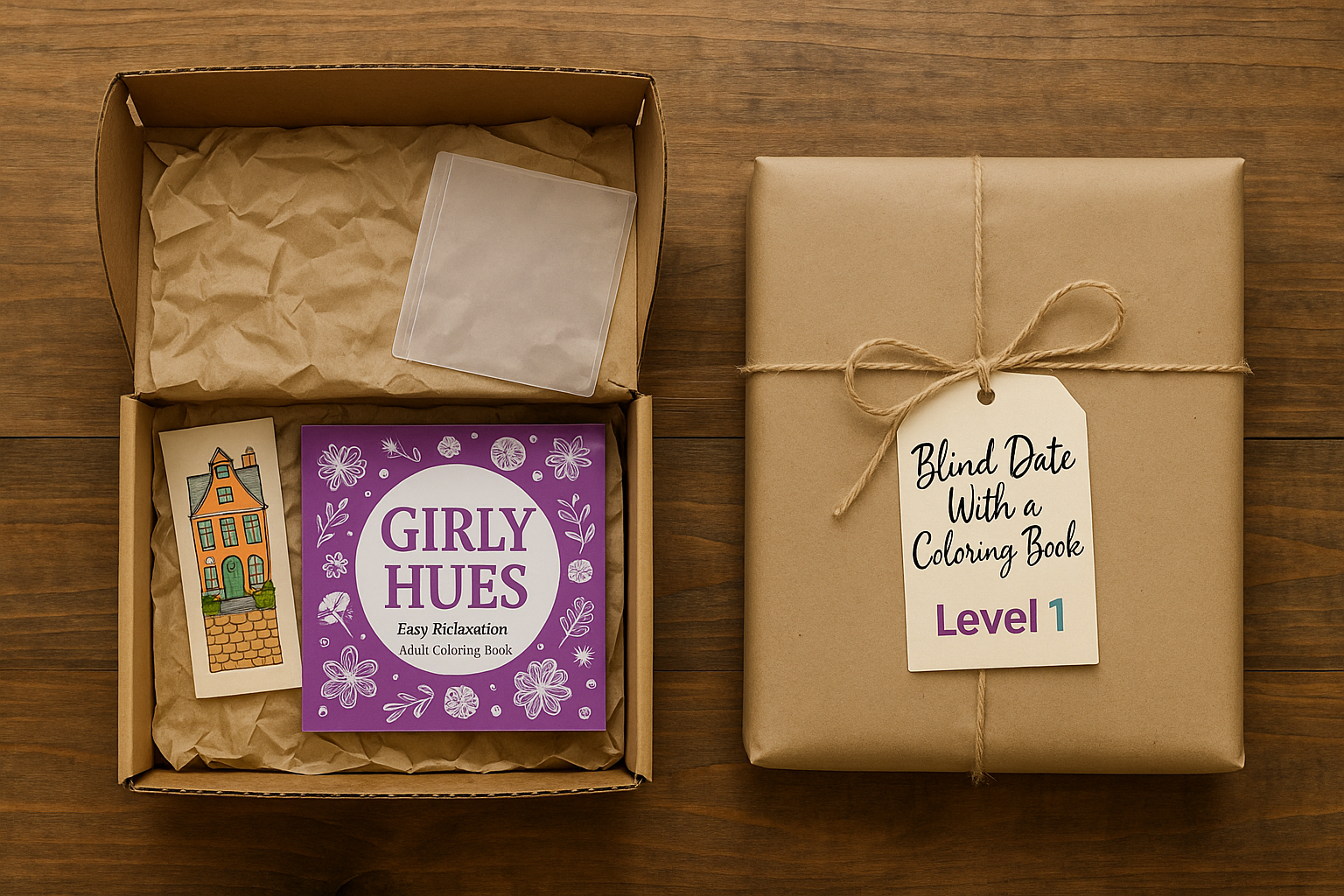 Unwrap the mystery! Each package comes wrapped in kraft paper and twine, hiding a surprise coloring book (or two, depending on the level!) plus cozy extras like bookmarks, markers, lip balm, stickers, and more. Perfect for self-care nights, creative getaways, or unique gift giving